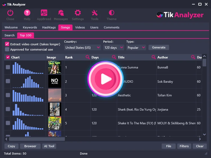 Stop wasting time finding the perfect soundtrack for your next viral video and let the Song Analyzer instantly reveal what's working right now!